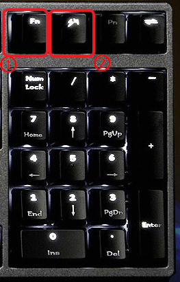 Fn 버튼을 누른상태에서 ↑(밝게) or ↓(어둡게) 버튼을 눌러서 밝기를 조절한다.