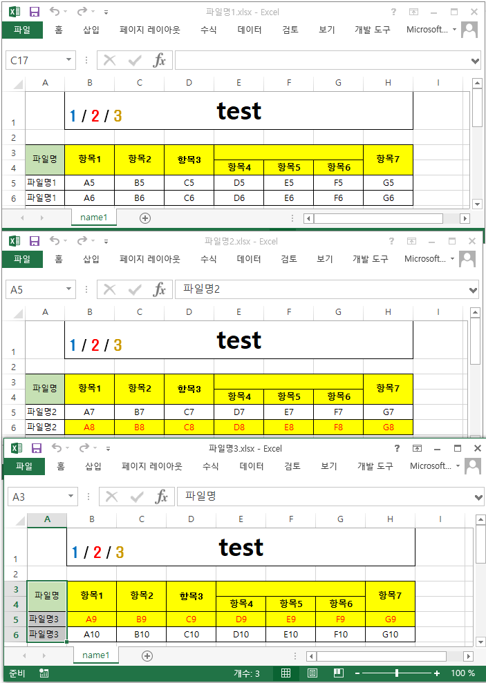 ※ 제목행 다음행부터 내용으로 간주하며, 제목행은 모든 파일에 모두 들어간다.