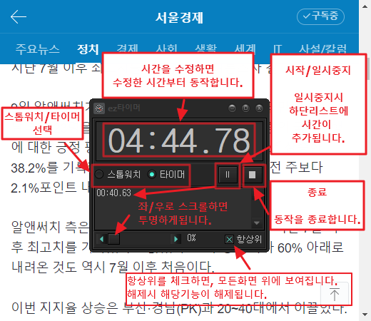 여기에 "시간수정 + 시간기록 + 항상위 기능 + 투명도 조절" 만 추가해서 만들었다.