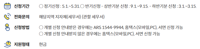 * 자세한 신청요건은 국세청 홈택스(www.hometax.go.kr)에서 확인 바랍니다